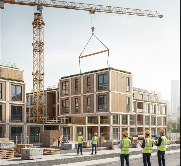 El uso de madera contralaminada y laminada permite reducir en un 75% las emisiones de CO₂ durante la construcción, y acorta los tiempos de obra hasta en un 40%.