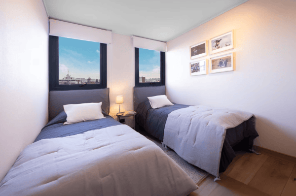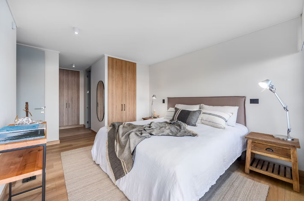Menos muebles, más espacio para respirar. Las líneas suaves, los armarios empotrados y los tonos claros amplían visualmente los dormitorios. Todo está pensado para favorecer el descanso y mantener el orden sin rigidez.