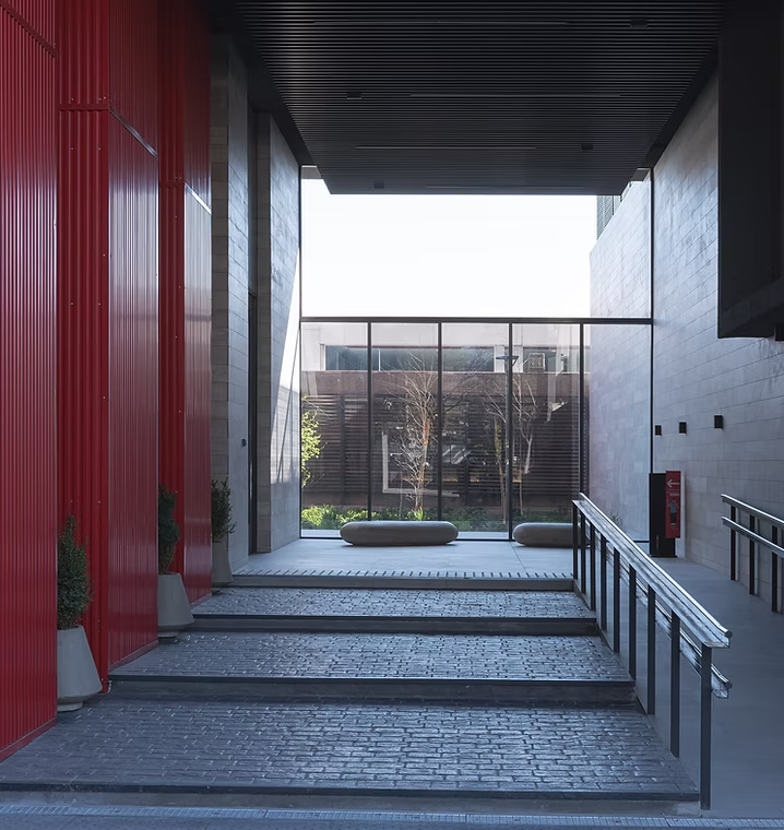 En AV+, edificio desarrollado por Puerto+Arquitectura en Providencia, el rojo aparece como un guiño identitario, marcando con precisión ciertos puntos del proyecto. No es un recurso ornamental, sino una decisión intencionada que aporta fuerza visual sin romper la armonía del conjunto. Una manera sutil y elegante de recordar que, incluso en un entorno de sobriedad, siempre hay espacio para la expresión.
