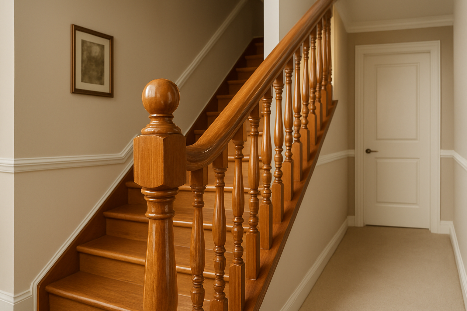 Barandillas de madera con alto brillo, balaustres ornamentales o terminaciones muy pulidas en espacios de paso pueden aportar poco y restar actualidad. Optar por acabados mate, estructuras metálicas o madera sin excesos decorativos permite mantener una estética más sobria y duradera.