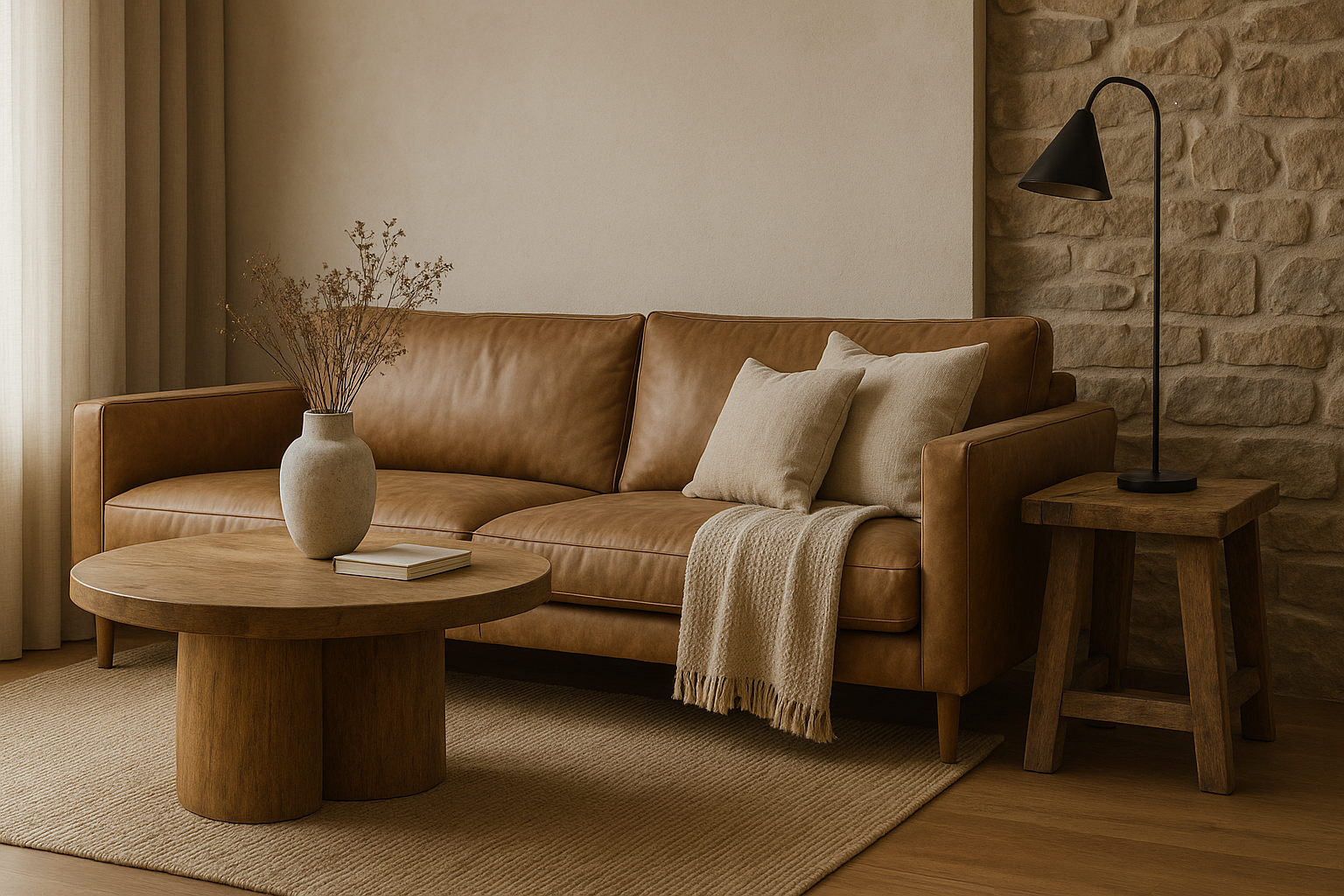 Lo importante es lograr equilibrio. Por ejemplo, un sillón de cuero liso puede convivir con una manta tejida, una mesa de madera rústica y una lámpara metálica satinada. Cada textura cumple un rol y aporta un ritmo distinto.